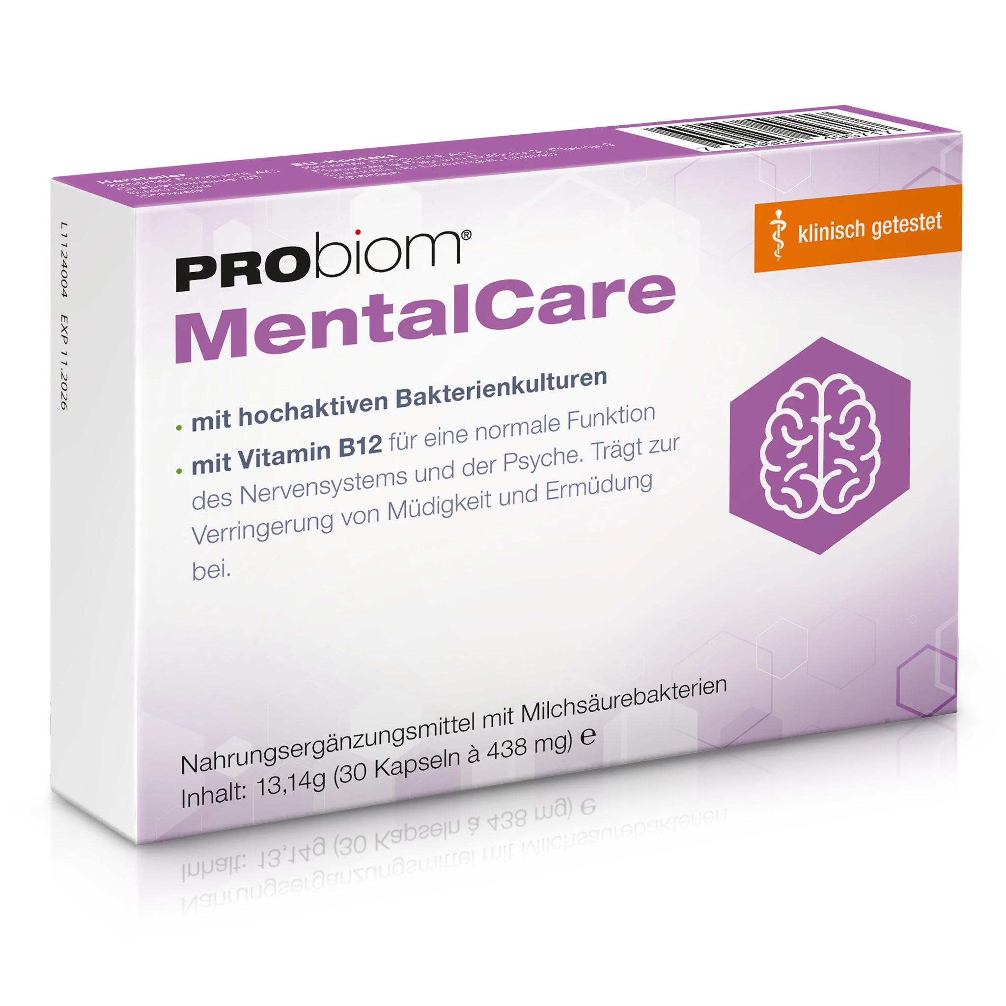 "Bei psychischer Beanspruchung kann die Unterstützung der Darmflora mit ausgewählten Bakterienstämmen sinnvoll sein, da das Mikrobiom nicht nur die Darmfunktion beeinflusst, sondern über die sogenannte Darm-Hirn-Achse auch die Stimmungslage, Emotionen und geistige Leistungsfähigkeit steuert. Wissenschaftliche Studien belegen, dass Darm und Gehirn eng miteinander kommunizieren und sich gegenseitig beeinflussen. Eine gezielte Unterstützung der Darmflora kann dazu beitragen, bei psychischer Belastung das Gleichgewicht des Mikrobioms zu fördern und so über die Darm-Hirn-Achse Vitalität und Wohlbefinden zu verbessern. In Kombination mit Vitamin B12, das die normale Funktion des Nervensystems unterstützt, zur psychischen Stabilität beiträgt und gleichzeitig Müdigkeit sowie Erschöpfung verringert, lassen sich Stimmung und Energieniveau steigern, um die täglichen Herausforderungen besser zu bewältigen.
